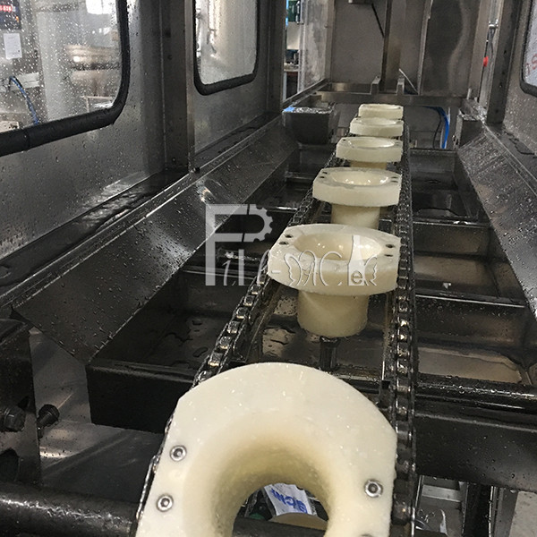 गर्म क्षारीय पानी rinsing 5 गैलन बॉटलिंग लाइन रैखिक सिलेंडर द्वारा संचालित