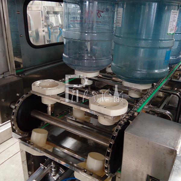 5 गैलन बोतल पानी भरने की मशीन को 3 चरणों में विभाजित किया जा सकता है: धुलाई, भरना और कैपिंग, कुल 36 वर्किंग स्टेशन, नीचे काम करने की प्रक्रिया: