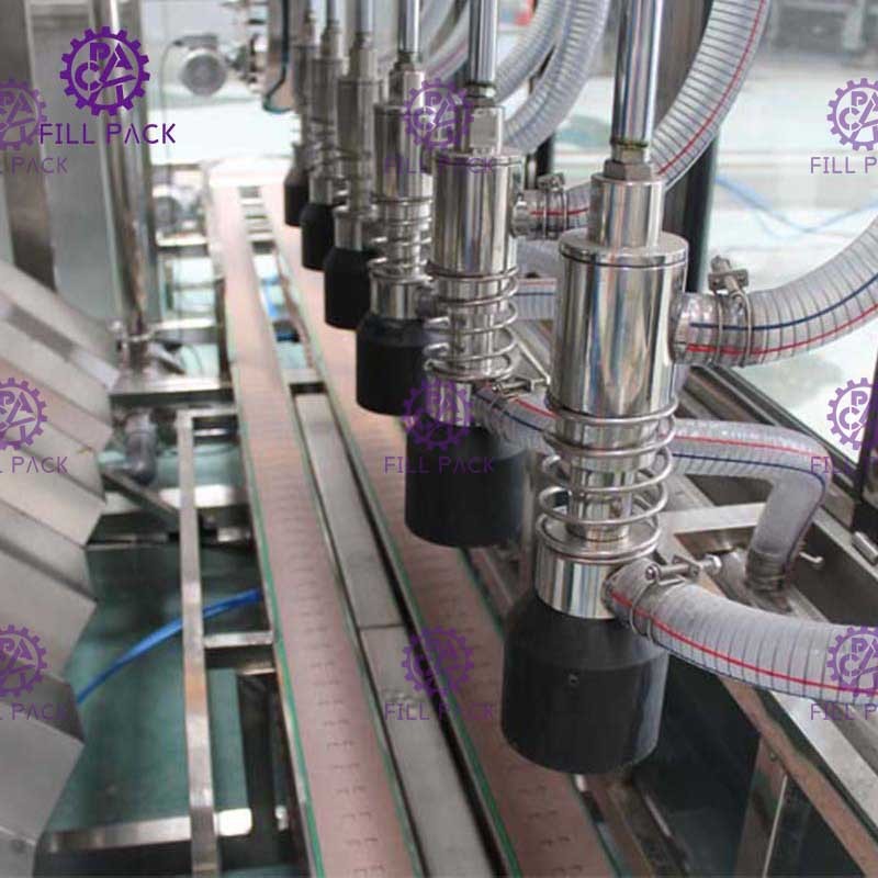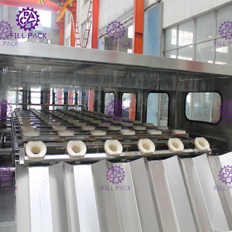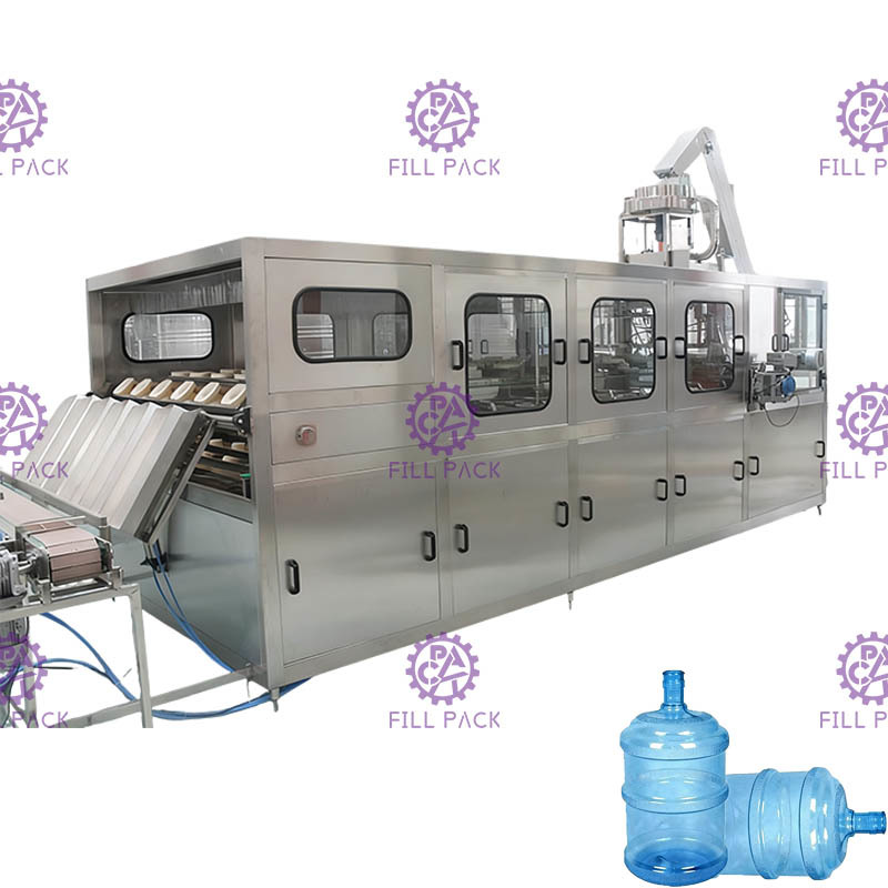 पूरी प्रक्रिया एक फ्रेम में विभिन्न कार्यों की 3 मशीनों के साथ संयुक्त है। पीएलसी का सामान्य नियंत्रण, कई फोटो बिजली और कई सिलेंडर; क्षमताः 800-900 बोतलें प्रति घंटे-5L